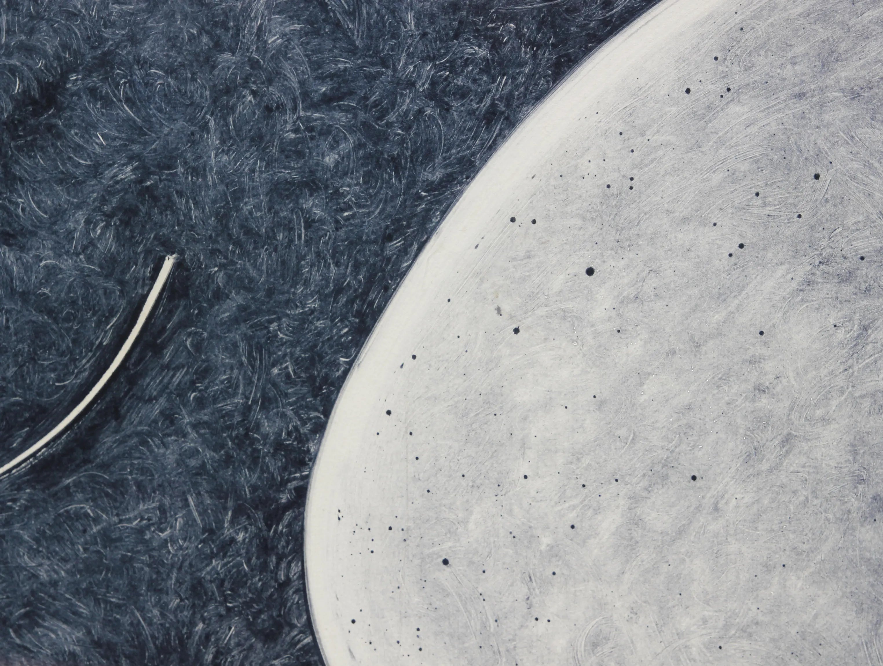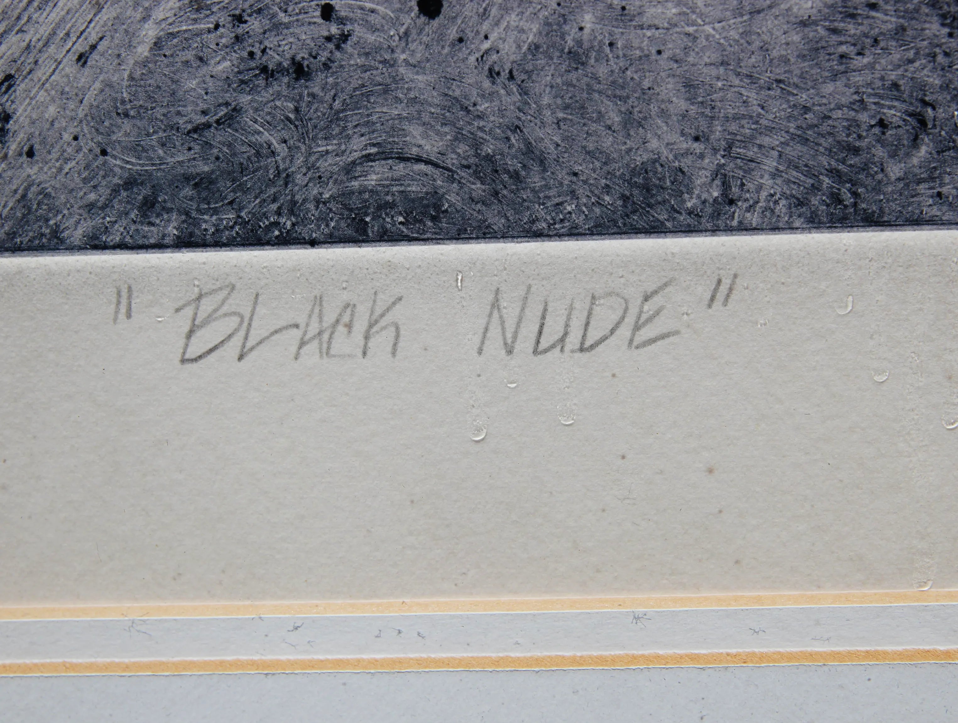 A minimal black-and-white monotype featuring an abstracted female torso. Each print is individually titled and signed in pencil along the lower margin. Presented in a sleek black frame with a crisp white mat, it brings a refined, gallery-level presence to any interior.