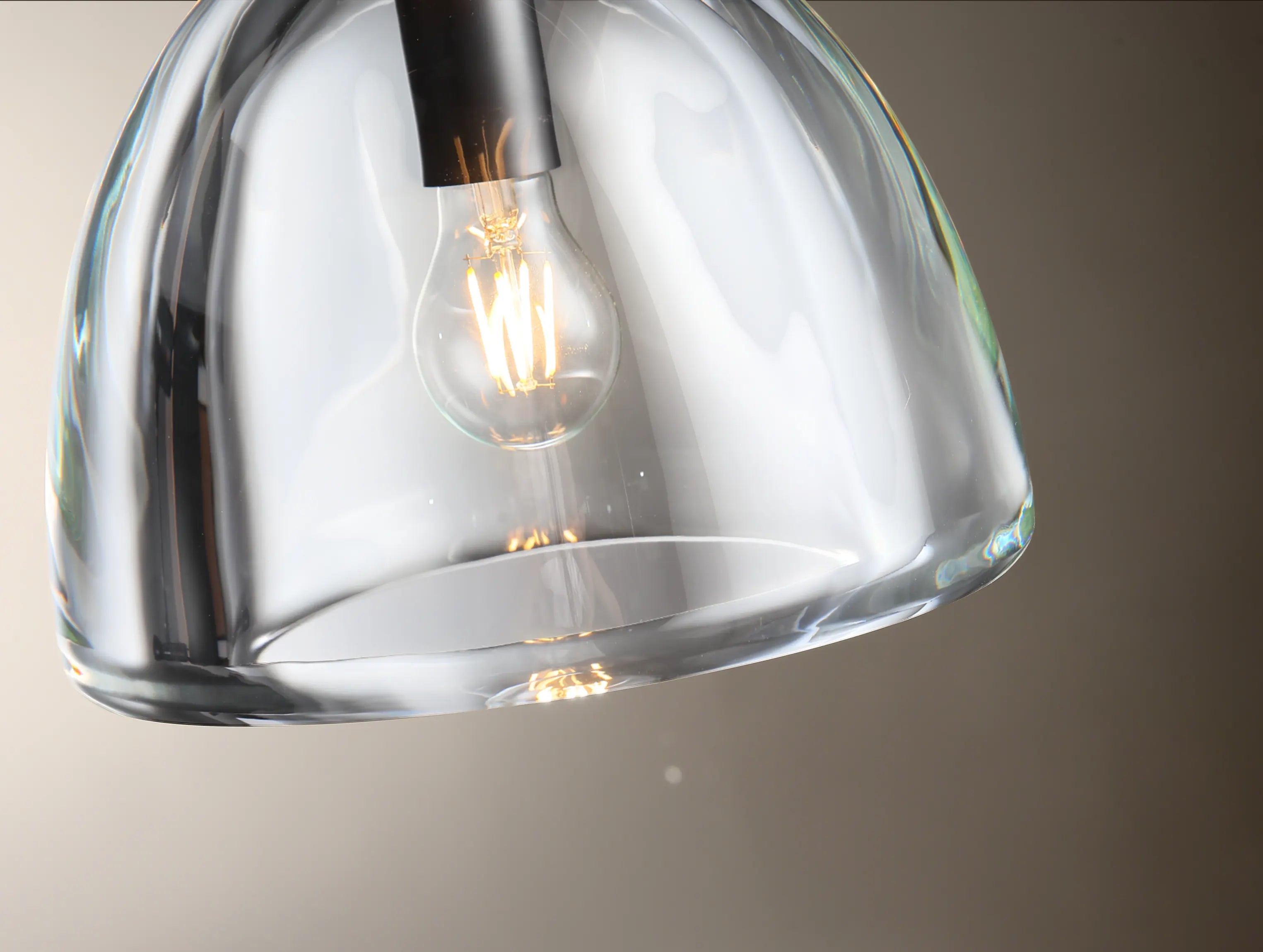 Inspired by late 19th-century botanist vessels, this pendant features a timeless crystal silhouette carved from a single, weighty block of custom-cast glass. Each shade is carefully cooled, lathe-shaped, and hand-polished over an extended process to achieve exceptional clarity and depth. Paired with a solid brass frame, the result is a refined lighting piece that balances sculptural presence with understated elegance.