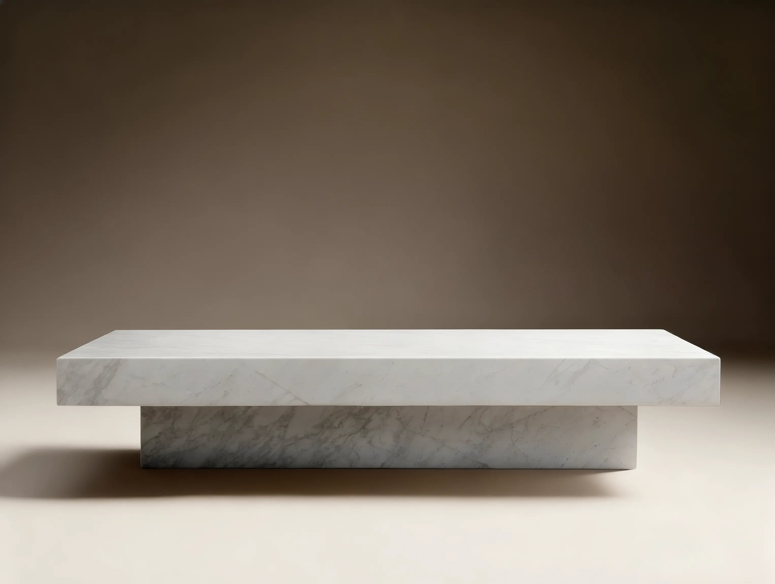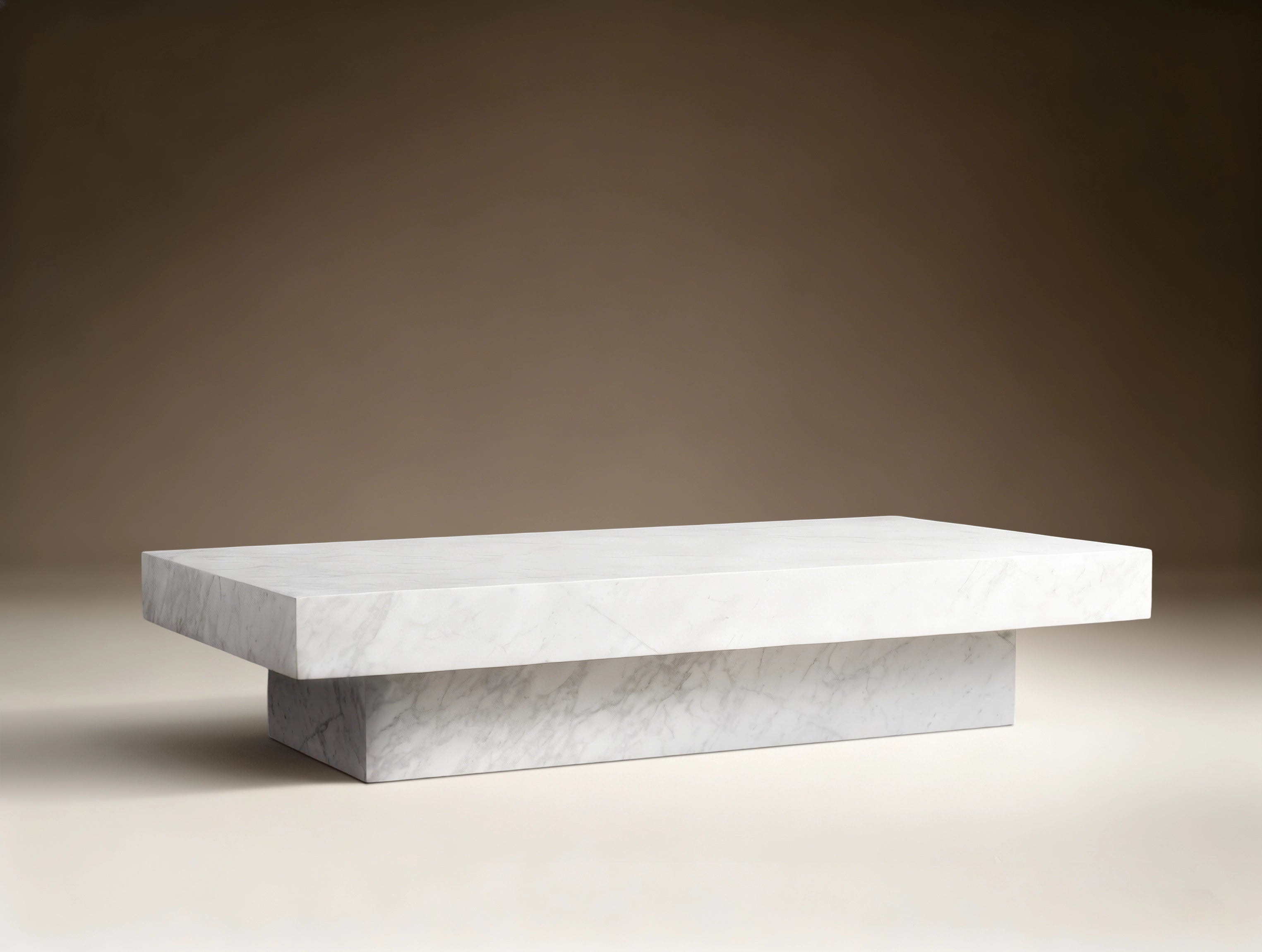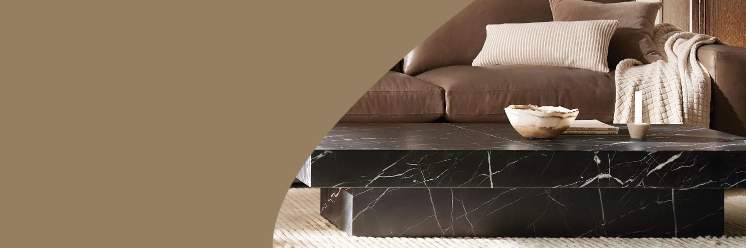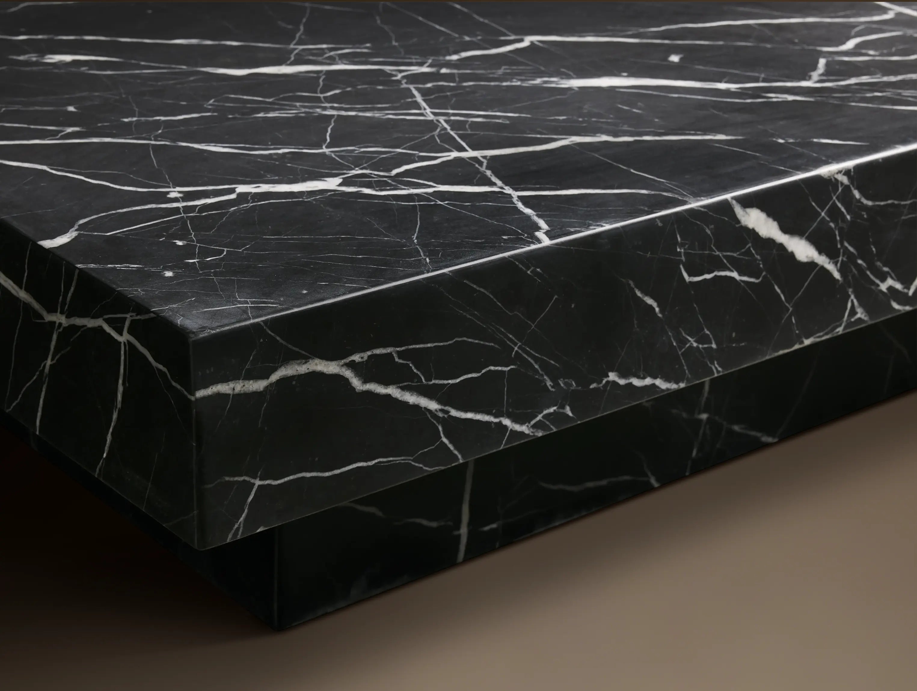 Crafted with an eye for modern simplicity, the Cinzia Coffee Table pairs natural materials with a grounded, low-profile silhouette. Its plinth-style base creates a sculptural presence, while the swirling stone or walnut burl veneer introduces rich organic movement. Each piece is artisan-made, offering unique variations in tone, veining, and texture that highlight the beauty of natural materials.